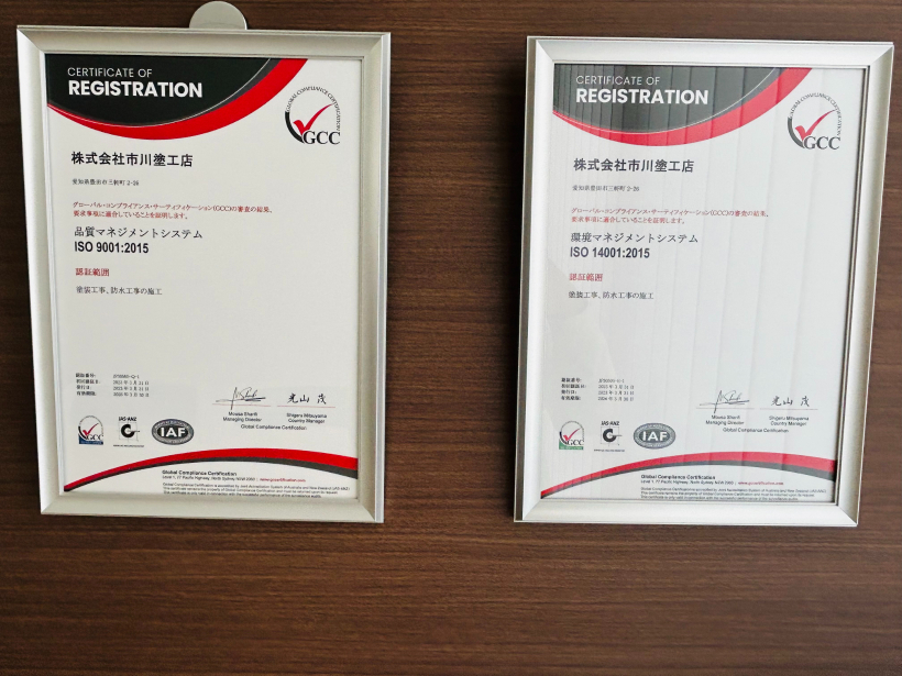 ISO認証を取得しました。 ISO認証を取得しました。 ISO9001:2015(品質マネジメントシステム)とは、顧客に提供する製品・サービスの品質を継続的に向上させていくことを目的とした規格です。 ISO14001:2015(環境マネジメントシステム)とは、サステナビリティ(持続可能性)の考えのもと、環境リスクの低減および環境への貢献を目指す規格です。